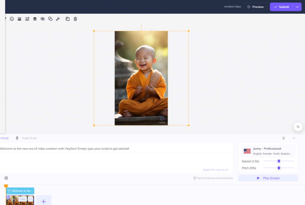 然后我们制作完之后去用一款叫Heygen的软件来生成视频,都是一键生成,非常简单