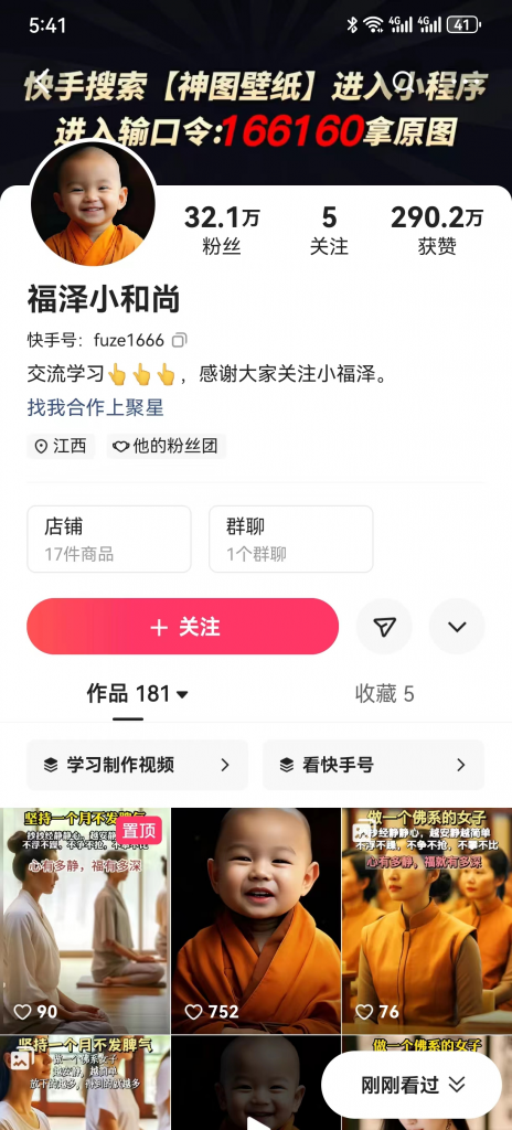 相信大家在刷抖音快手的时候应该也都刷到过一个小和尚在说着禅语的视频,播放量点赞量相当大,粉丝也特别多,其实这种视频只做起来非常简单啊,之前有粉丝说要魔法以及英文输入还有剪辑制作什么的很麻烦,章鱼哥在这里给大家教学一种最简单的制作方法,就是通过一个国内的MJ 网站来制作小和尚的图片,这个网站是中文输入就可以了,不需要像用魔法那样还用英文输入,这个你直接中文输入就可以给你生成图了,如下图所示。